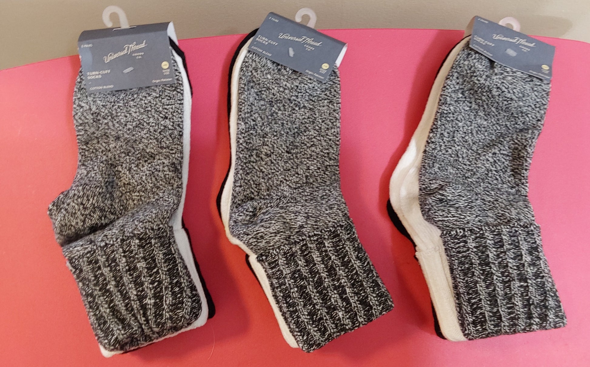 Universal Thread Turn-Cuff Socks. Cotton blend. 3 pairs per set